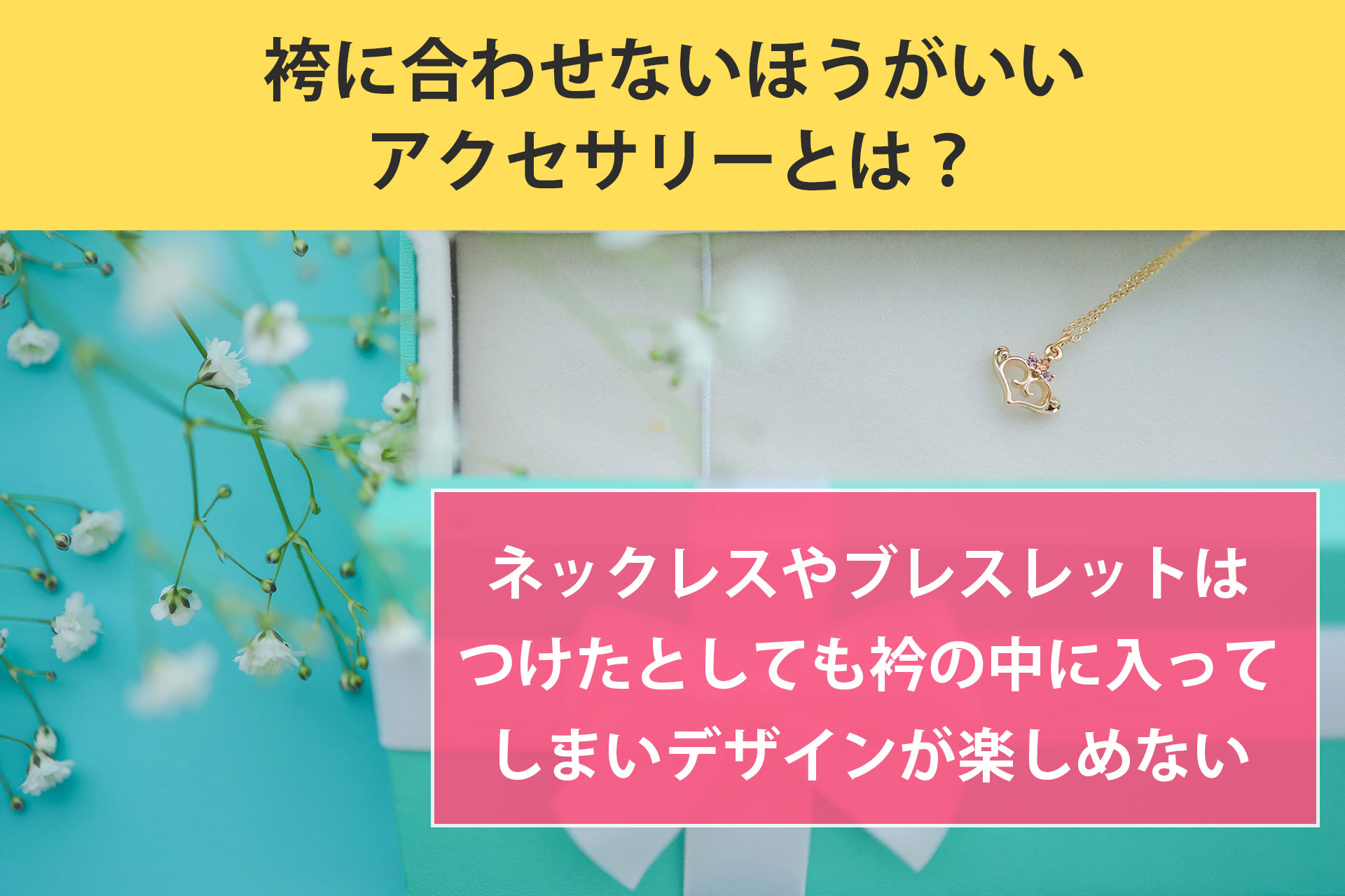 着物に重ねるように着用できる大ぶりのネックレスをつける……という手もありますが、袴の印象に合いにくく、コーディネートが難しいのであまりおすすめできません。
