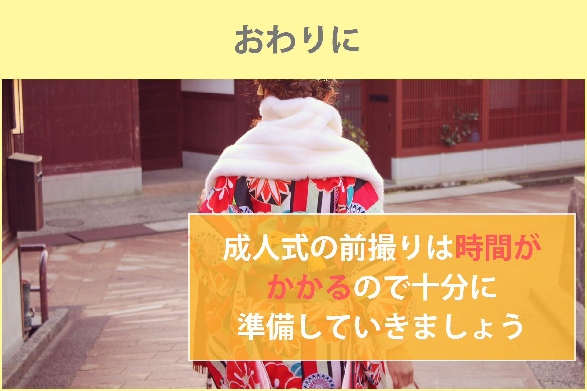 - 成人式の前撮りを楽しむために「前日」と「当日」は予定を空けておくことがオススメ
