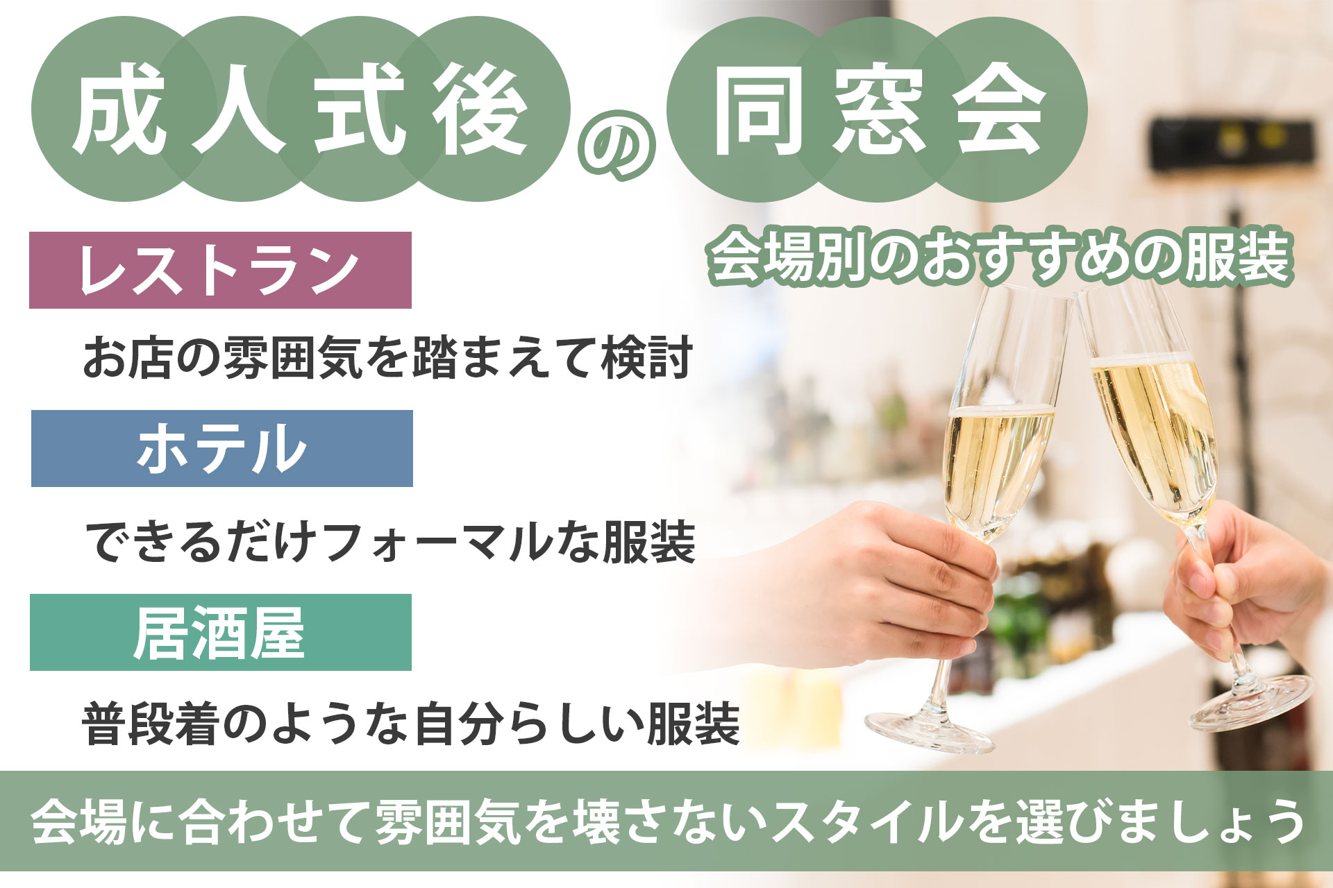 成人式のあとの同窓会ではどんな服が正解?会場別のおすすめの服装